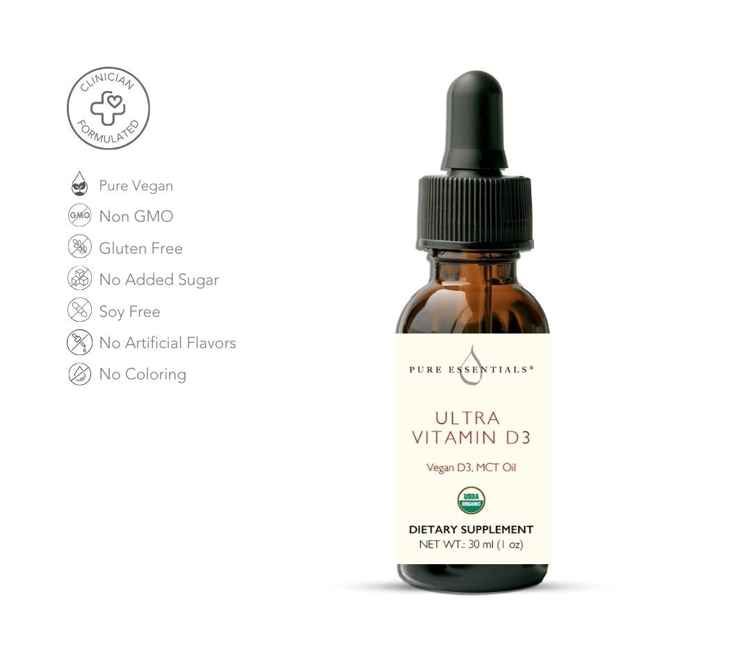 Ultra D3 delivers a plant-based, highly absorbable form of vitamin D3 from reindeer lichen, paired with organic coconut MCT oil for enhanced absorption. It’s USDA Certified Organic and suitable for vegans — making it a clean, effective way to support immune health, bone strength, and optimal brain function.
