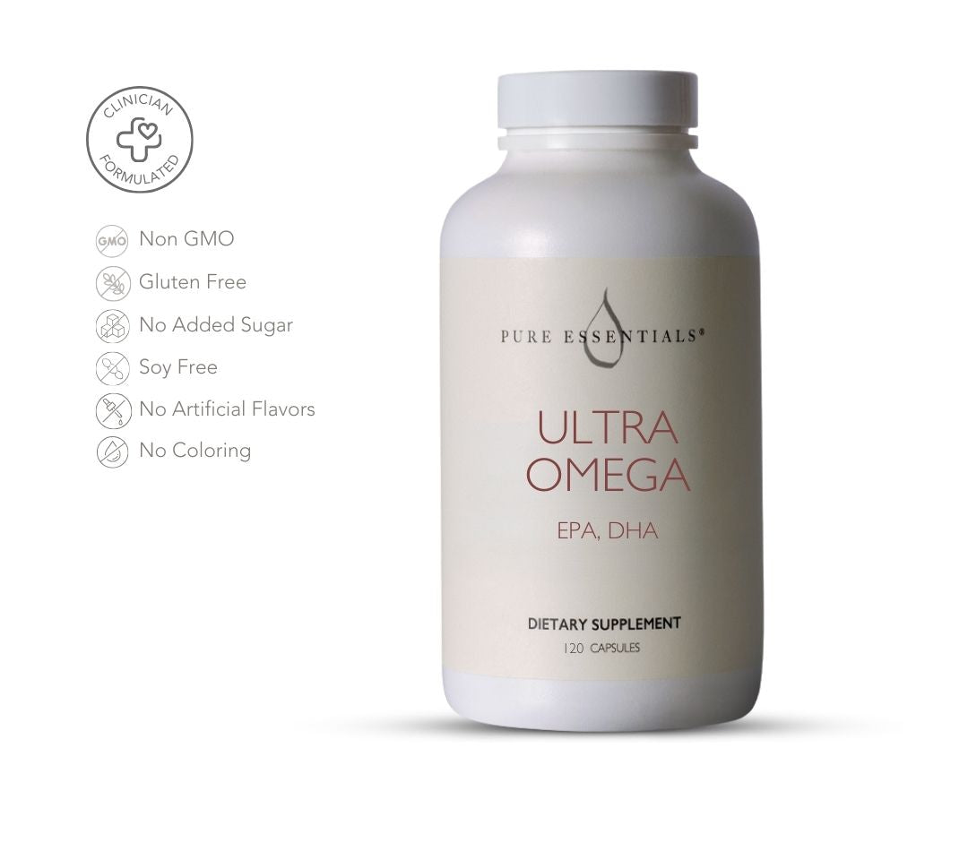 Ultra Omega delivers high-potency EPA and DHA in their cleanest, most bioavailable form. It helps support brain performance, emotional balance, memory, and cognitive health, while also promoting a healthy inflammatory response throughout the body.
