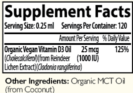 • USDA certified Organic Vitamin D3 (from lichen): plant-based source to support bones, mood, and immunity